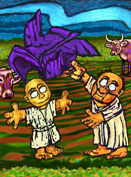 Casting the Mantle… The little man with big eyes for God Left that cave after hiding from God. God had cleared things up… And in faith Elijah took God at His word. Then God told him to anoint Elisha To succeed him as prophet… What the…? But, God had cleared things up… Big time! So Elijah went and found Elisha… Plowing a field with many oxen. Elijah went up to him And cast his mantle high in the sky. The cloak fluttered like an excited, purple bird And landed on a surprised Elisha. The new prophet celebrated with a party Then followed Elijah… Big time… I Kings 19:19