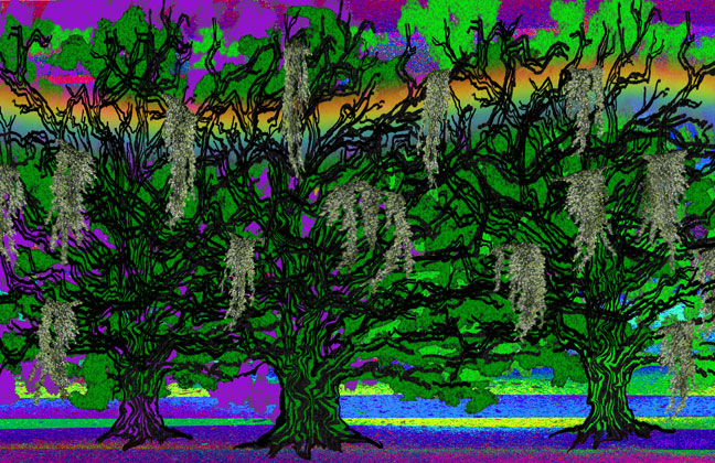 Live Oak Sanctuary... Twisting branches reach out... The freedom of creativity and joy. Gnarly trunks provide a solid foundation. The comfort of sanctuary... Shelter for God's creatures. A special place for homeless plants. Moss hangs in ribbons of celebration. A raucous party is in progress. Birds sing songs of praise. Flowers shout out joyful colors. The Live Oak tree... An Evergreen, Becomes a wonderful symbol Of God's Care, Comfort and Grace. Poem by Robin Jensen, inspired by the uninhibited Live Oak trees in Florida and other areas of the South.